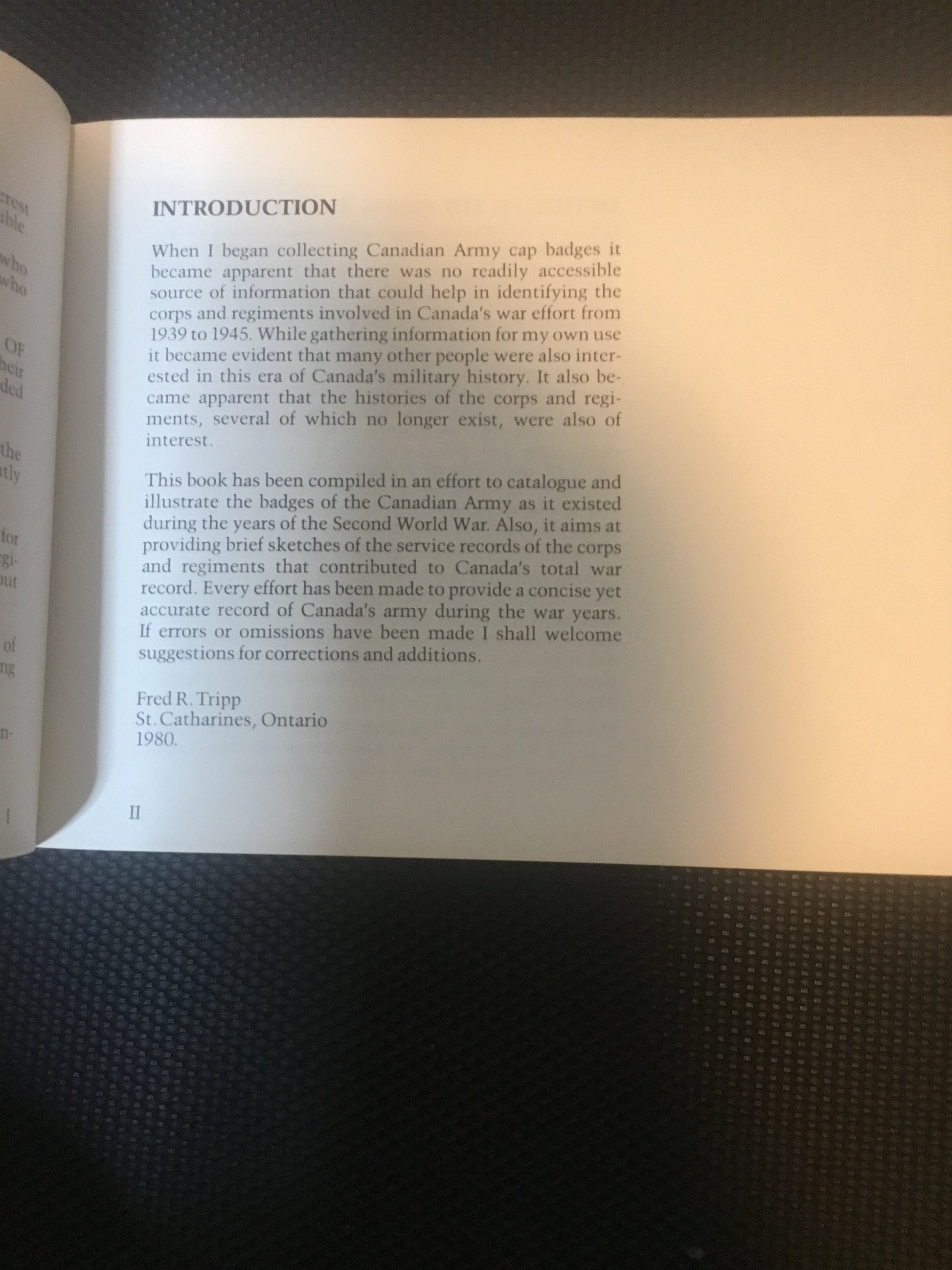 Canada’s Army In World War 11 Badges And Histories Of The Corps And Regiments By E.R.Tripp, in good condition ,contains 93 pages with black and white photographs of Canadian regimental badges with captions. The book was published in St. Catharines, Ontario by Manning Press Ltd in 1980. Excellent reference book .