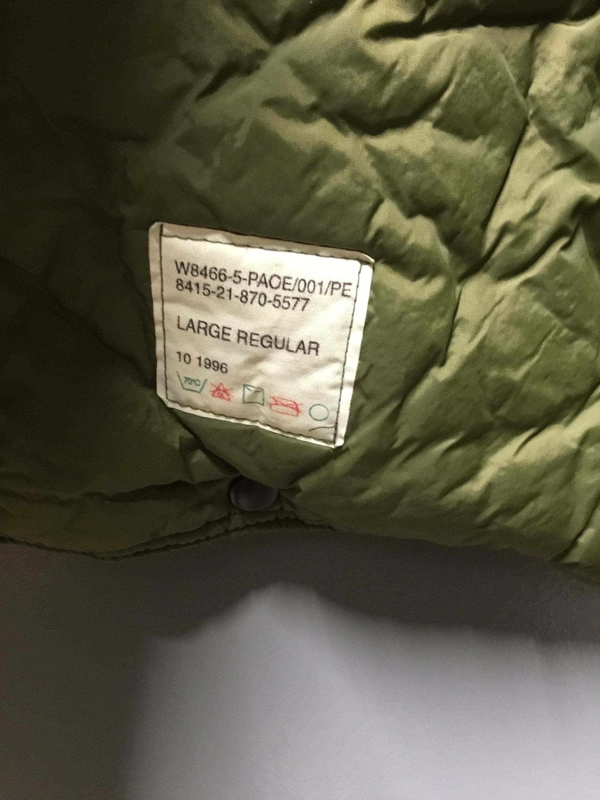 Canadian Forces Arctic Parka inner Liner Large Regular , snap in type , knitted cuffs in good condition .