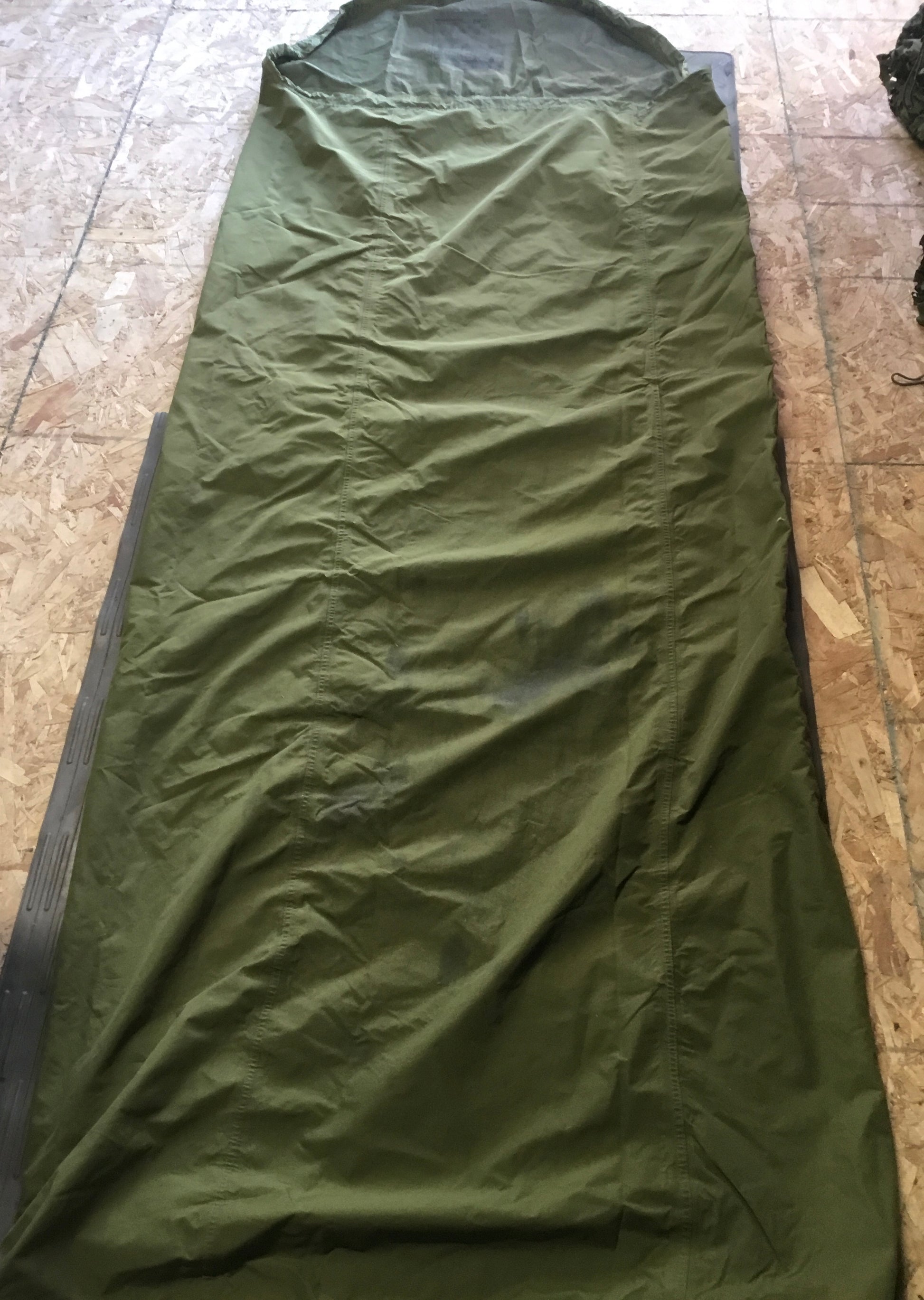 Canadian Forces Bivy bag zippered type with draw string , condition is used with no holes or cuts does have some stains on the outside from use in the field., made of gore tex material to keep your sleeping bag dry ,measures about 80 inches . great for light packing