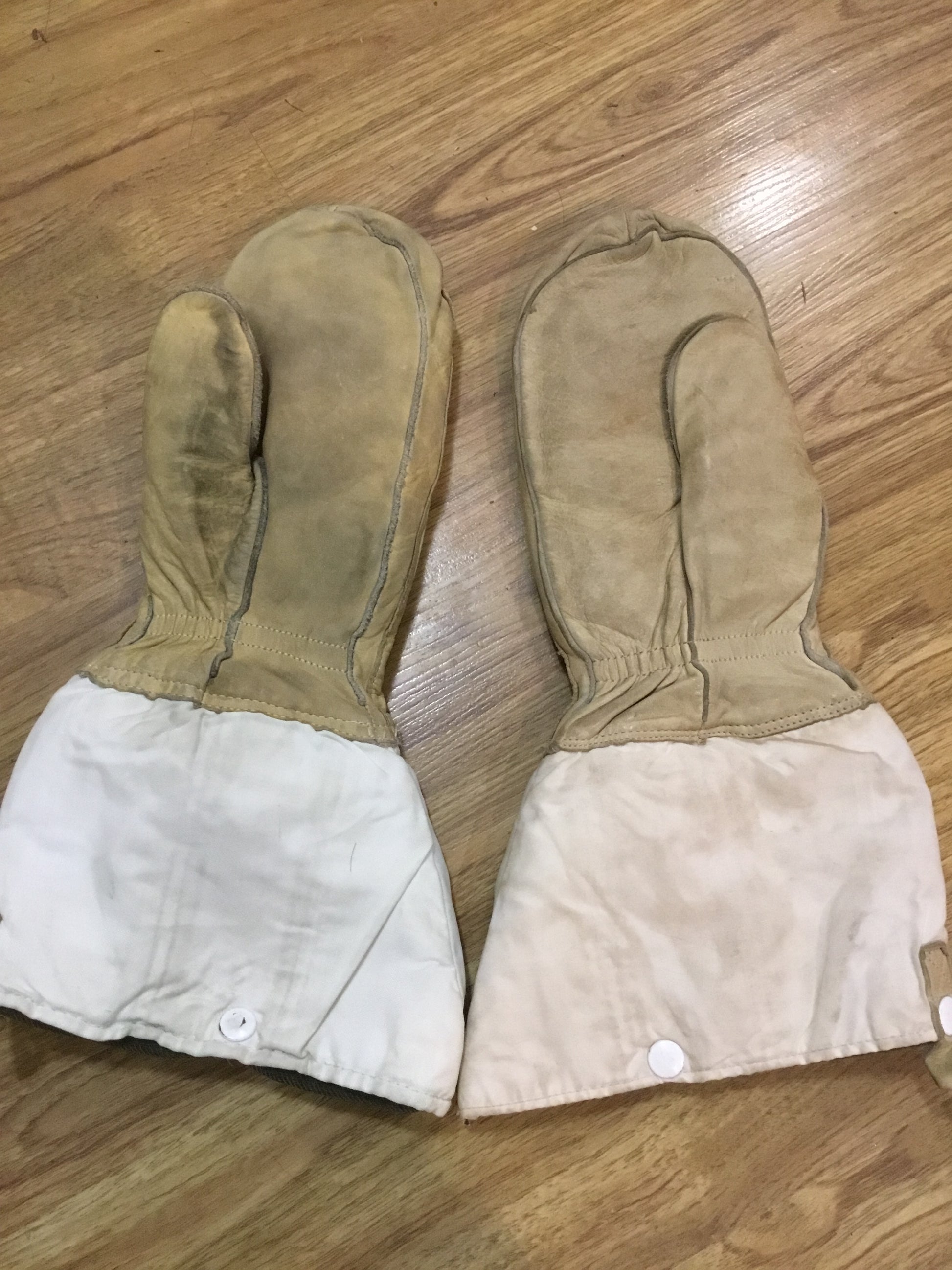 Canadian military Arctic mitts with removable liners , size medium , in good condition with some wear with staining .Great mitts for winter outdoor activities.