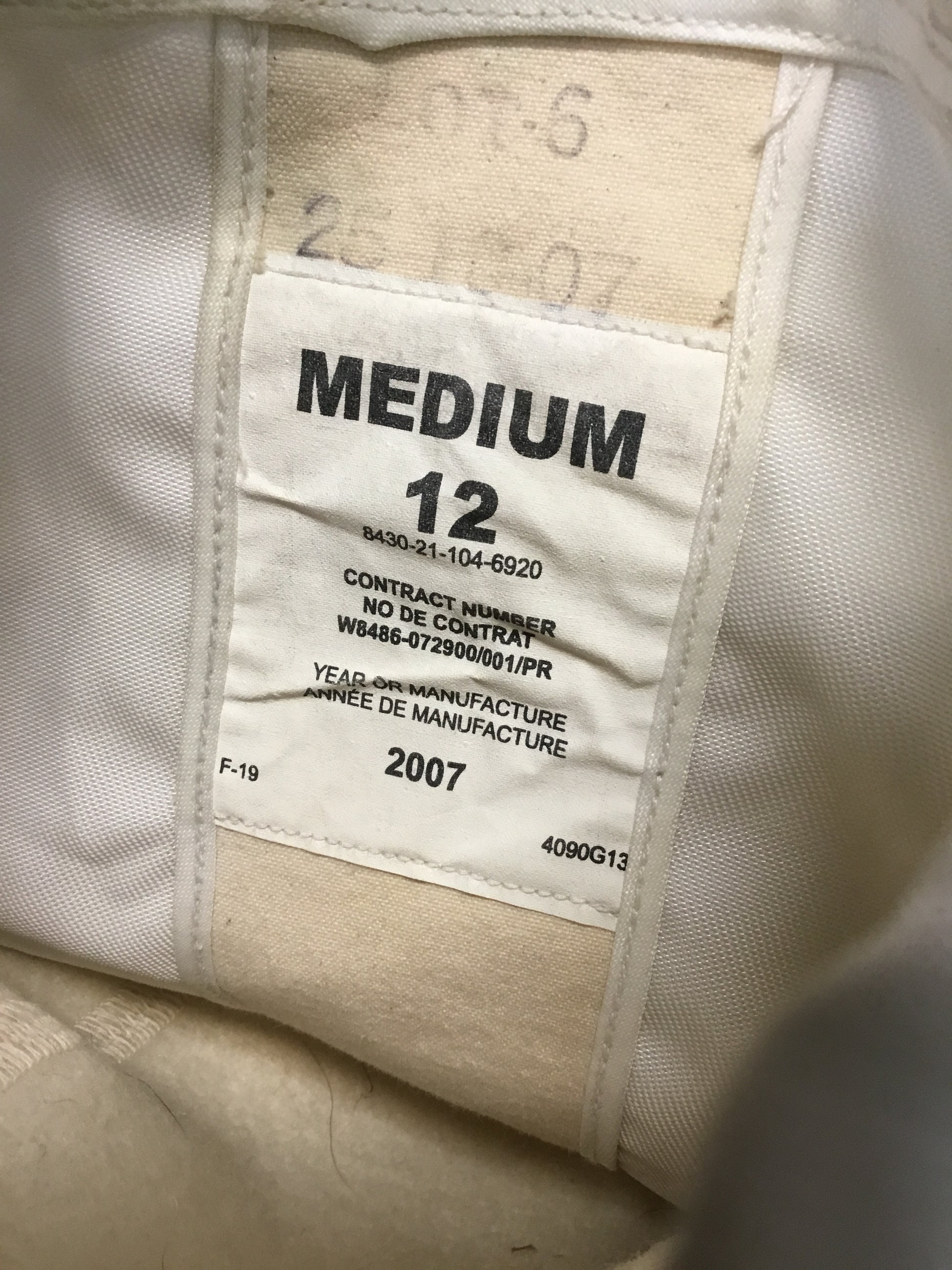 Canadian Military Winter Muckluck Boots Size 12 in good condition with some scuffs and wear with staining , made in Canada .Made of Nylon and rubber with wool liners , comes with frost shields Great boots for winter activities , very warm.
