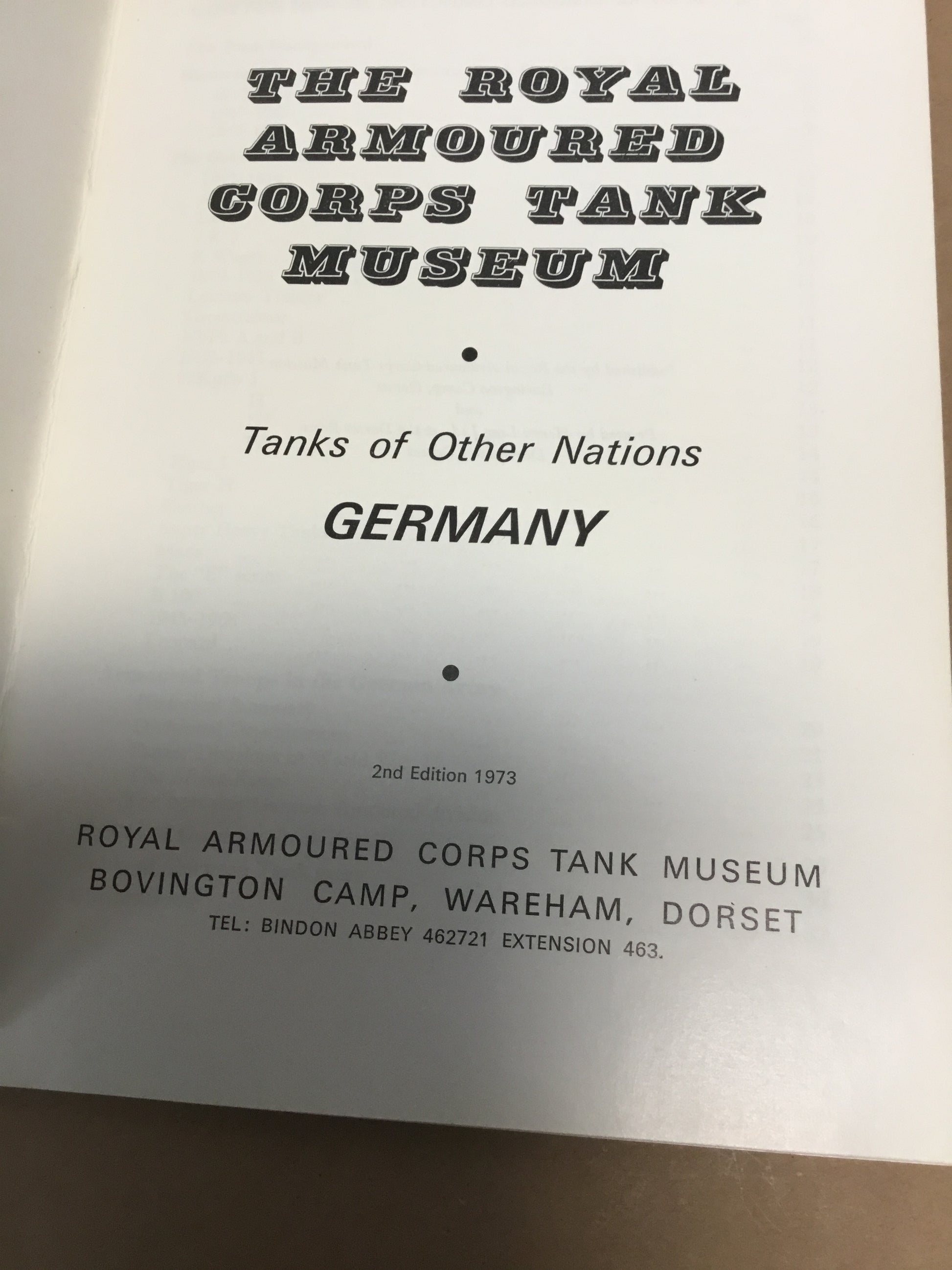 German Tank Book from the Royal Armoured Tank Museum. Copyright 1973 , 52 pages some illustrations., clean condition.