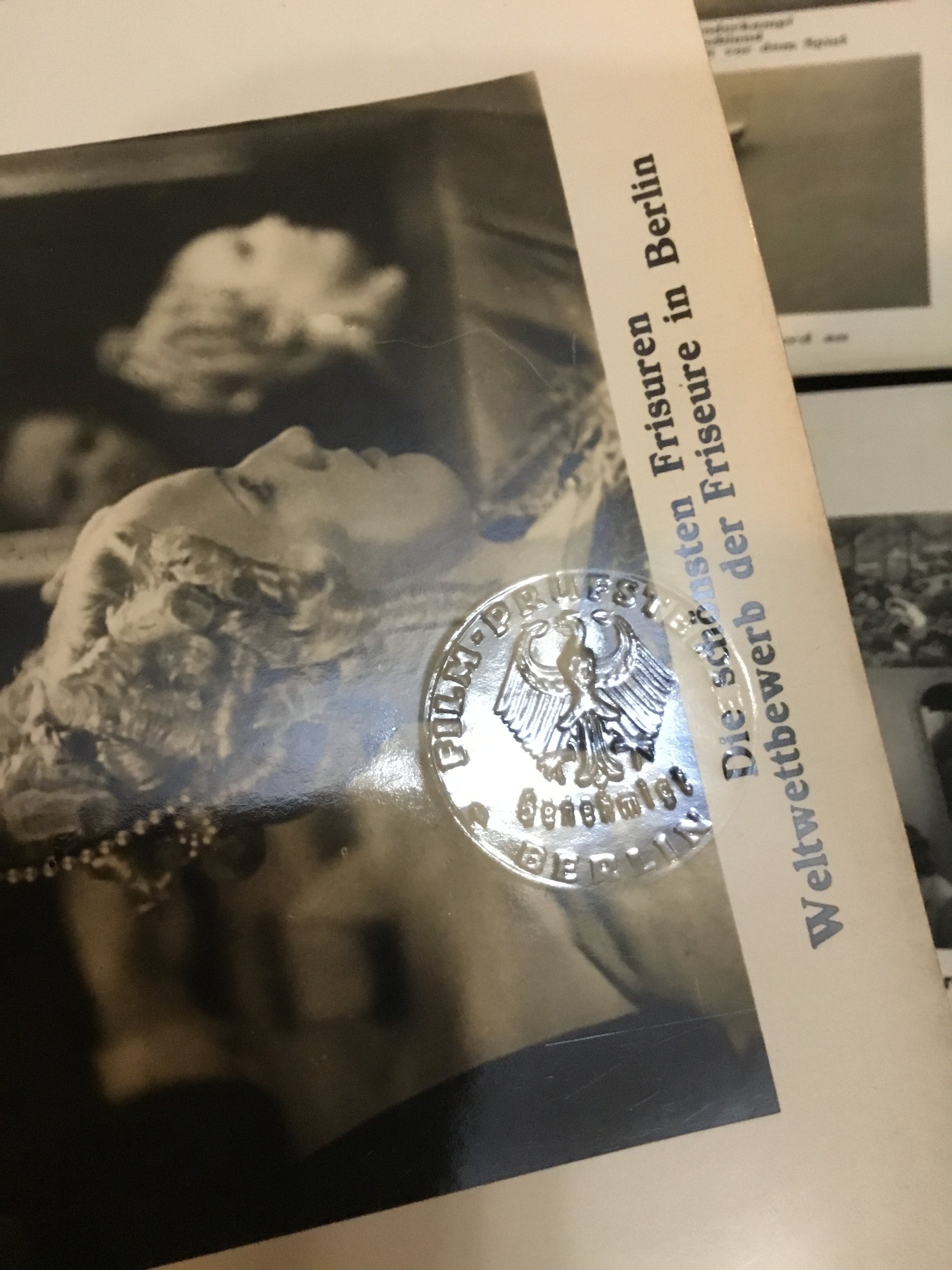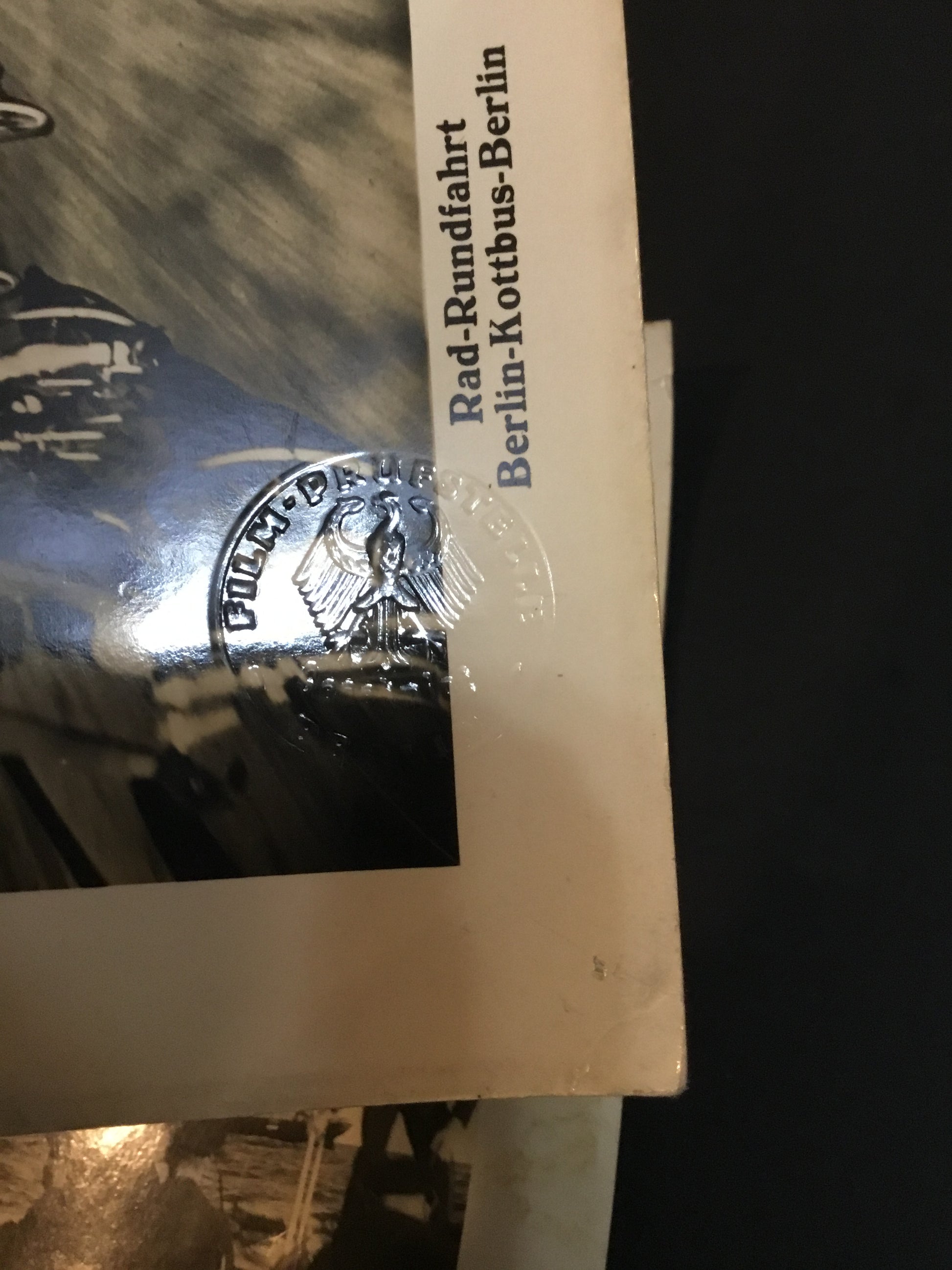 Lot of 3 WW11 German Photo Sheets UFA Stamped . 4 photos in each , one sheet stamped with Nazi embossed seal and two stamped with Imperial eagle . Sheets do have some yellowing and curled edges .