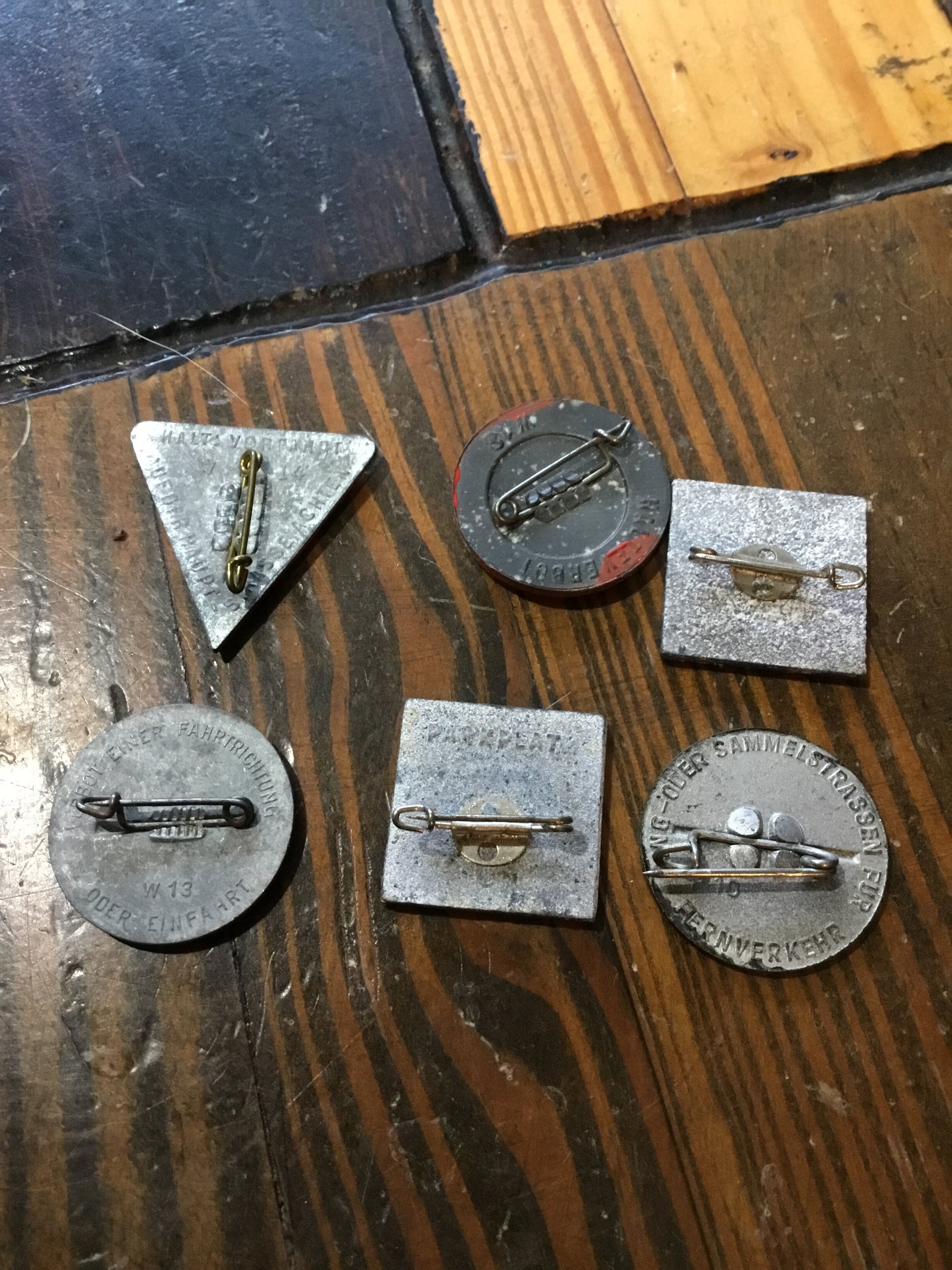 Lot of 6 WW11 German WHW Traffic Sign Tinnies , all in original condition with makers name on back .