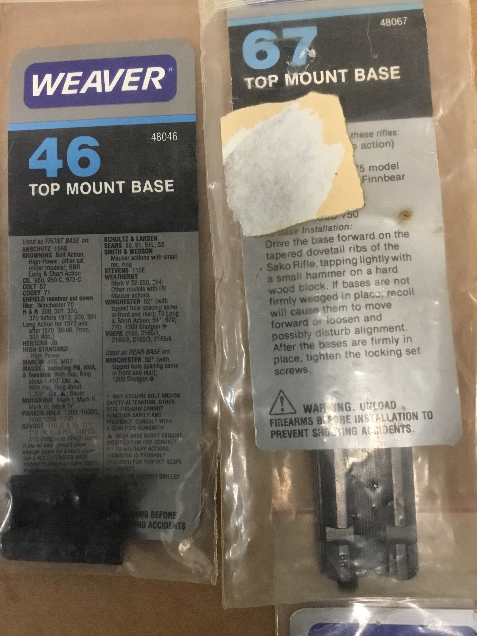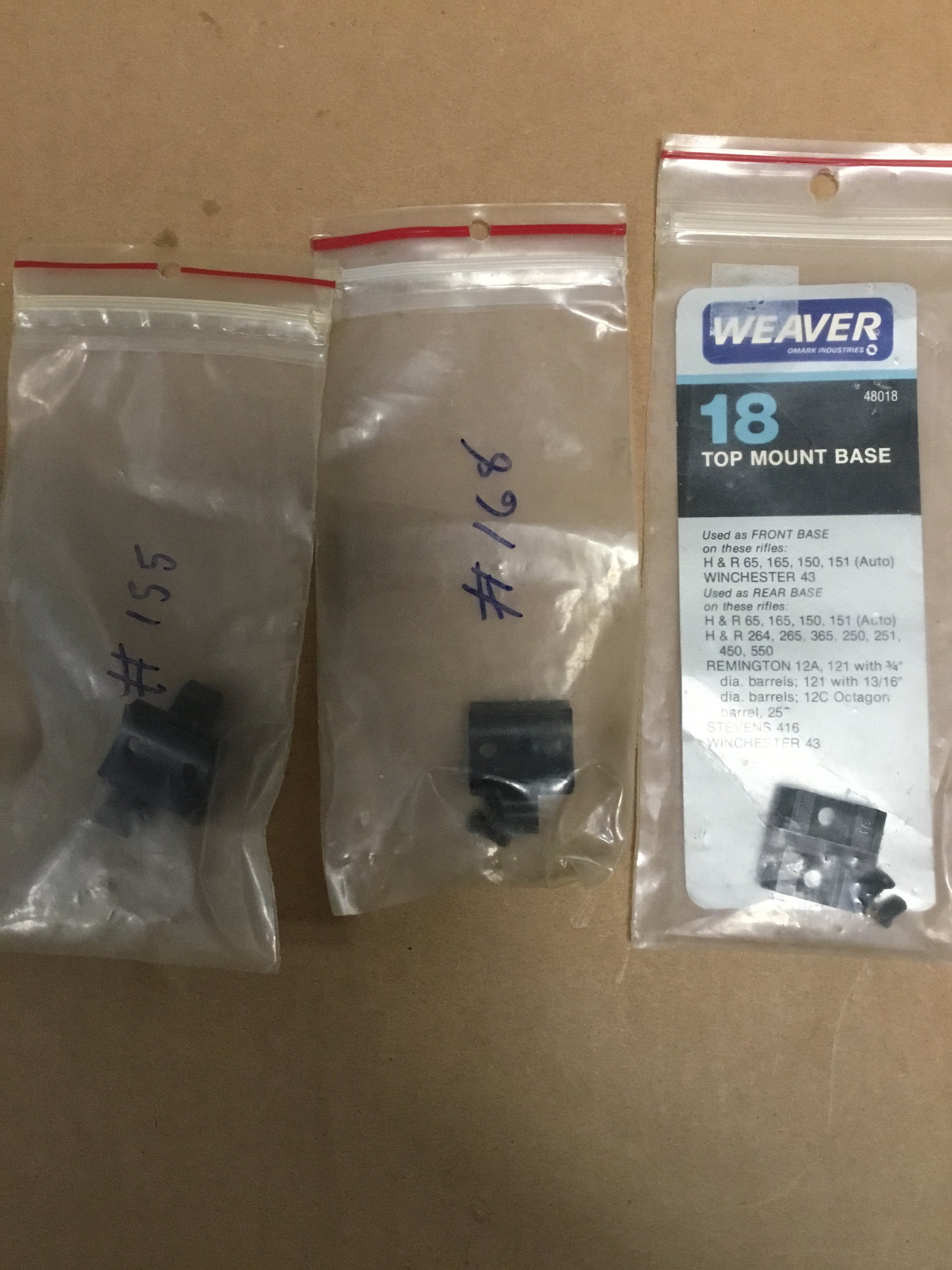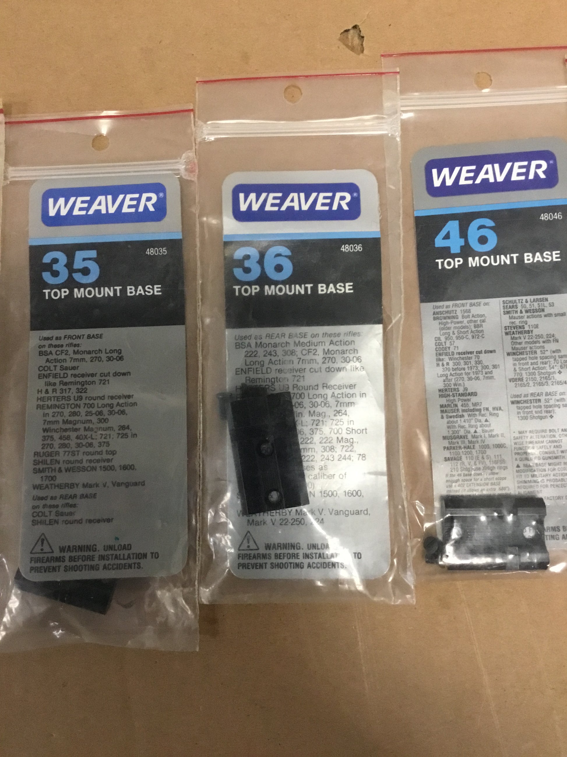 Lot of 8 Vintage Weaver Top Mount Base for scopes , NOS Packaging , two don’t have cards , may or may not be missing pieces .