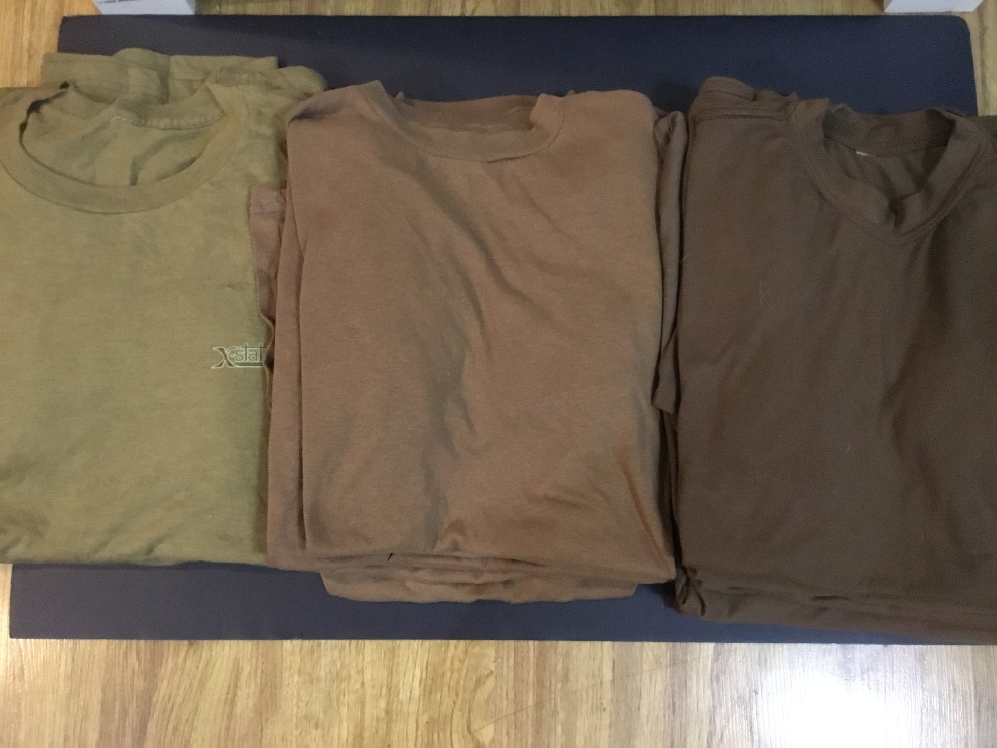 Military Surplus Brown T-Shirts , may have some light staining or variation in colour .Large , as is .