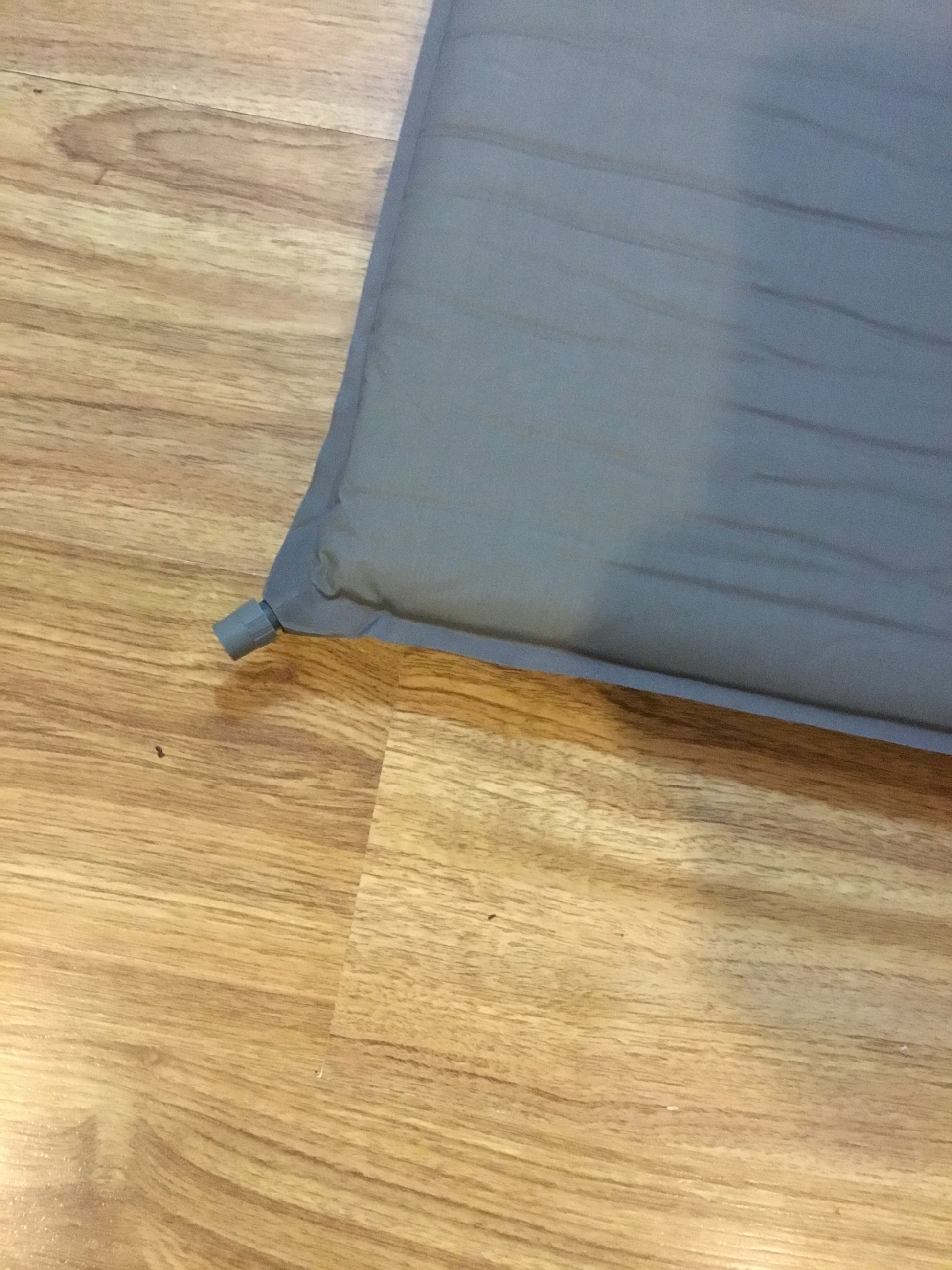 Great compressed sleeping mat for taking on camping trips. Open valve and it will draw air into mat, blow into it a couple of times for extra firmness. In good condition may have soldiers name marked , measures 20 x73 inches .COLOR is gray