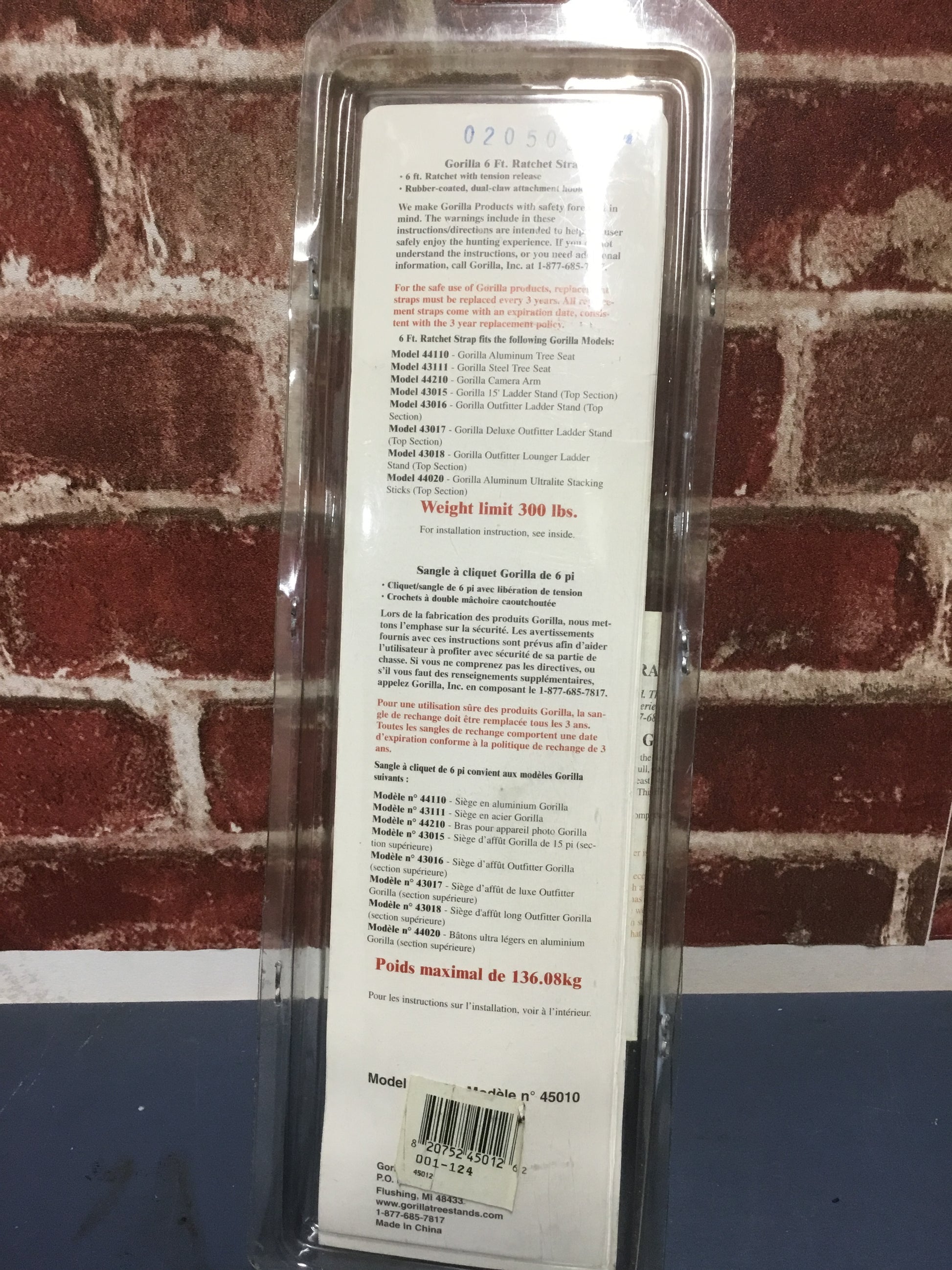 New 6 Foot Gorilla Ratchet Strap , for Hunters Tree Stand , NOS stock .