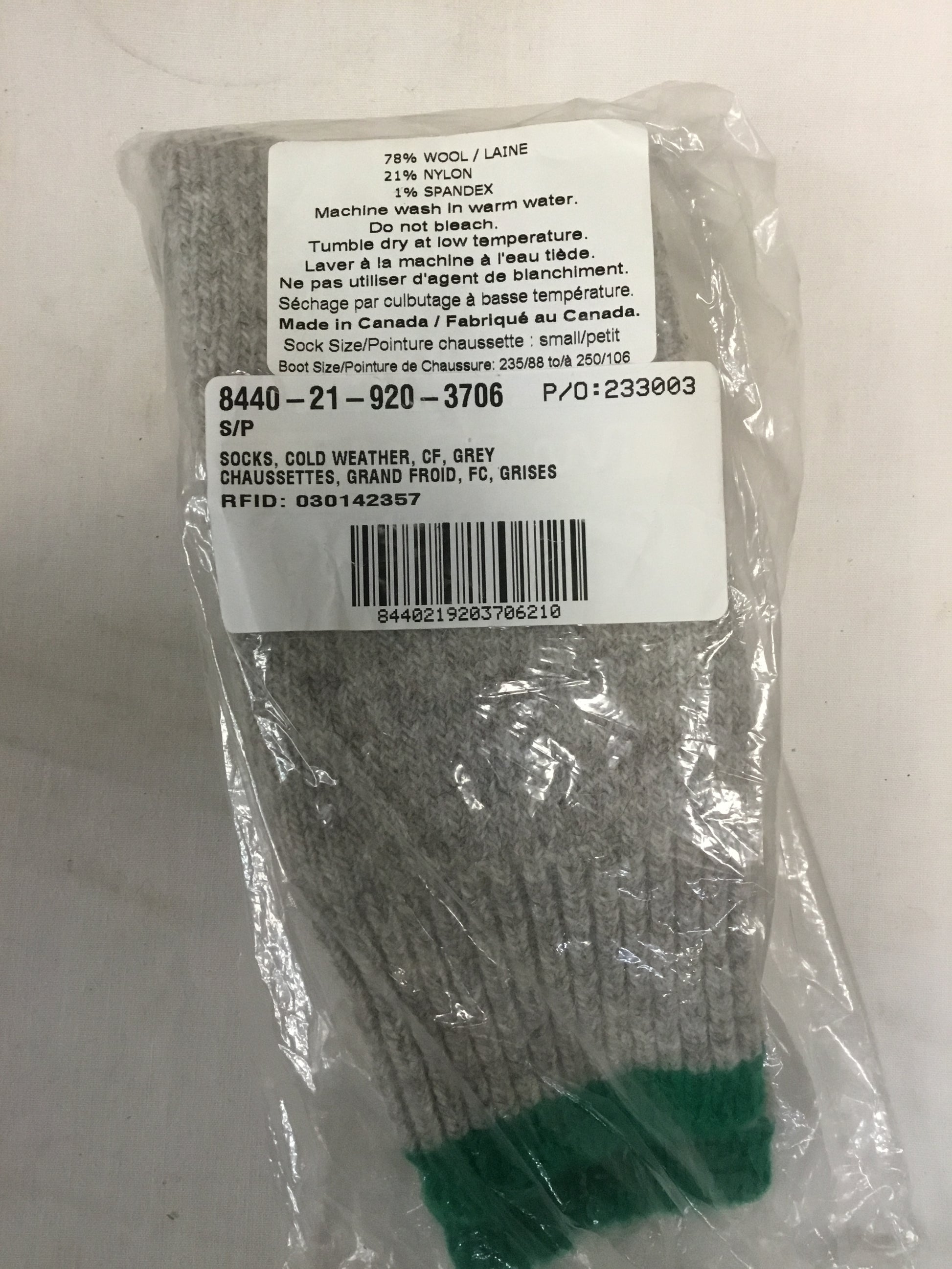 New Heavy/Weigh Military Wool Socks , size Small would fit sizes 6-7 made of 78 % wool and 21 % Nylon 1 % Spandex. Not often available.
