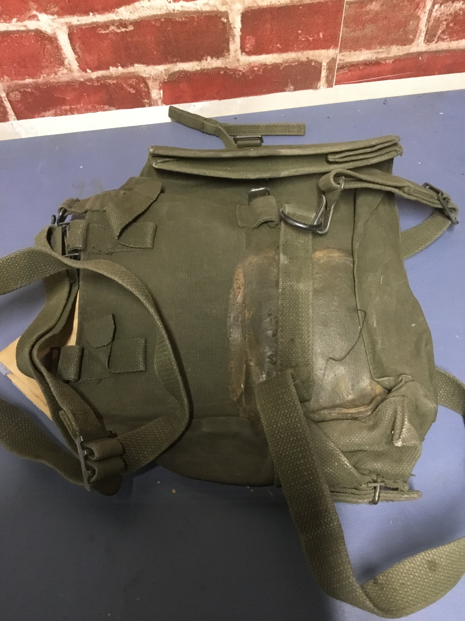 P51 Type 2 Gas Mask Bag Green Canadian, made of heavy duty canvas material , includes some cleaning pads .