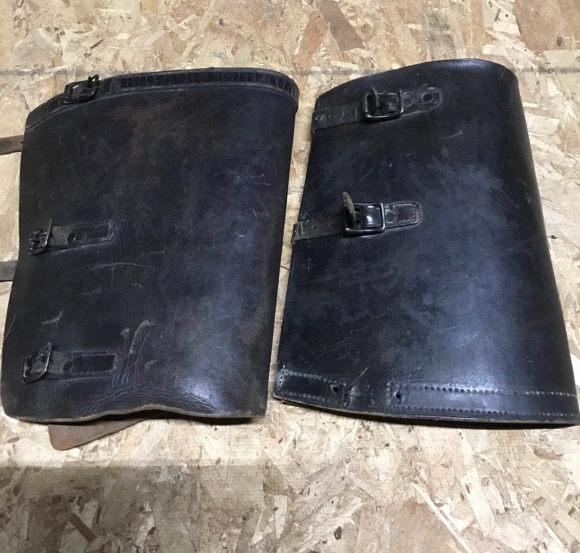 Per WW1 Canadian Leather Gaiters 1910-1911 , also has makers name , One strap missing and one strap broken .Leather still pliable .