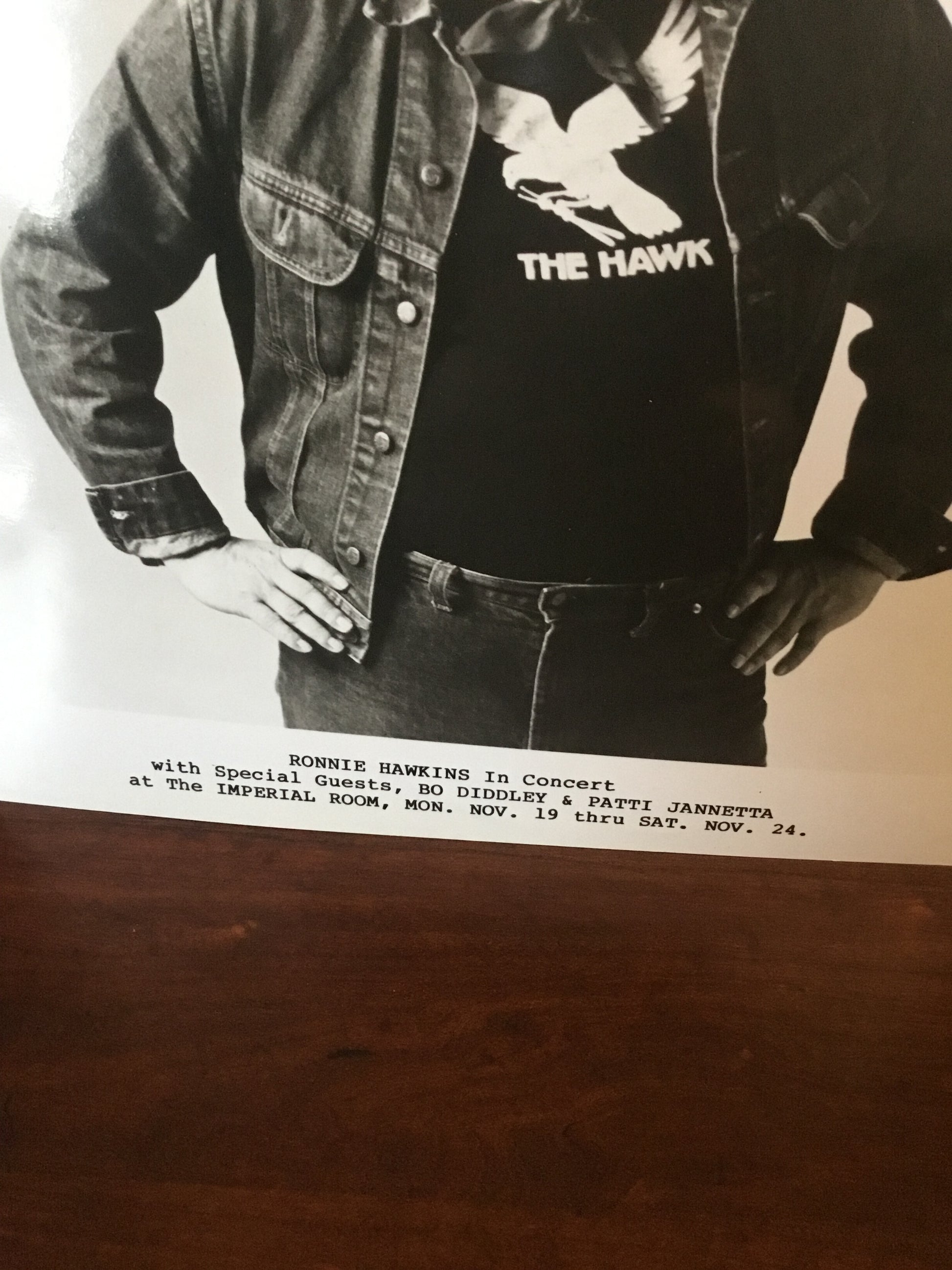 Ronnie Hawkins in Concert Press Photo 8 x 10 With special guest , Bo Diddley and Patti Jannette , has a small cut in one corner