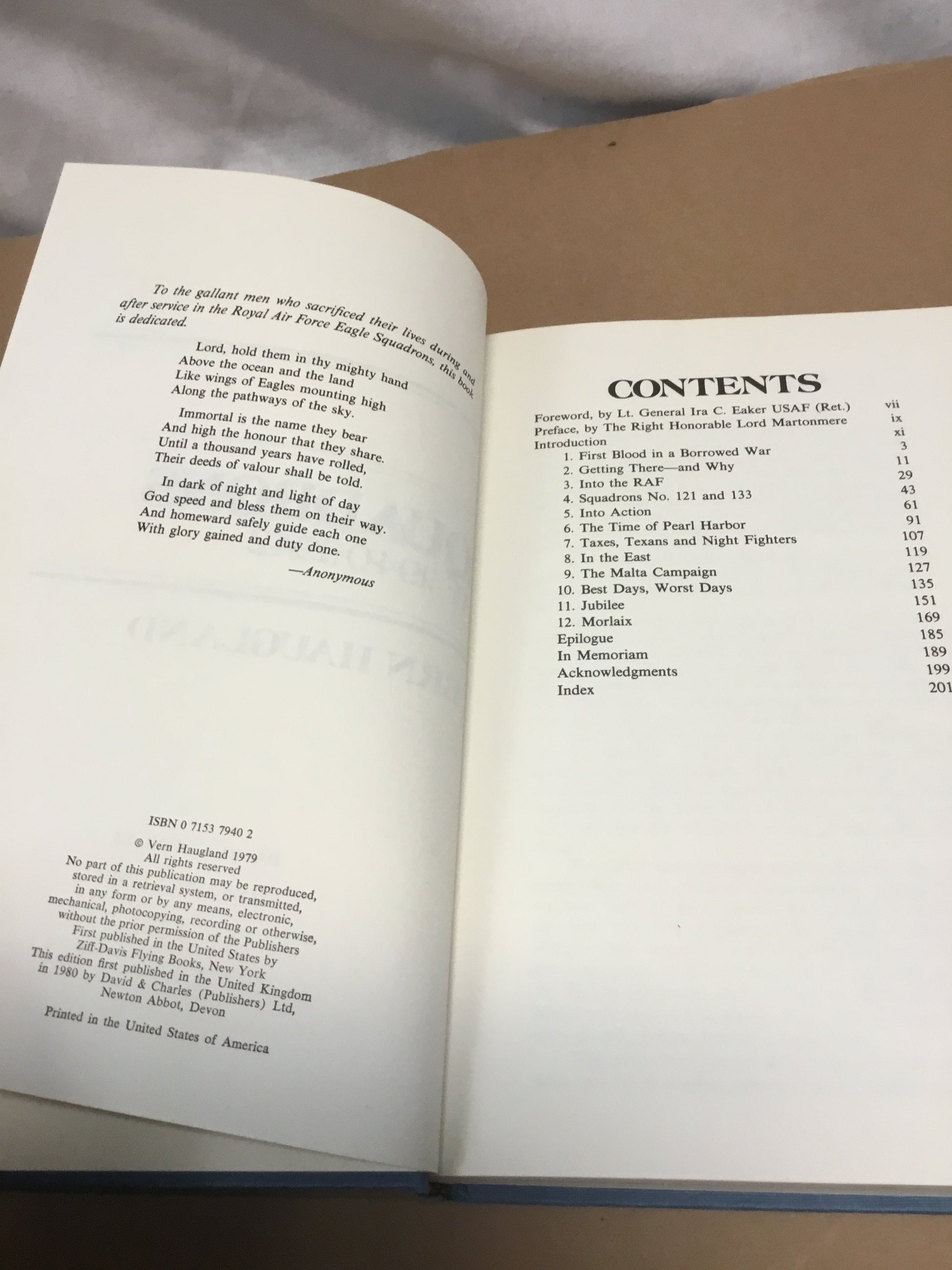 The Eagle Squadrons ,Yanks in the RAF 1940 to 1942, hardcover some wear on dust cover , 206 pages, copyright 1979 .