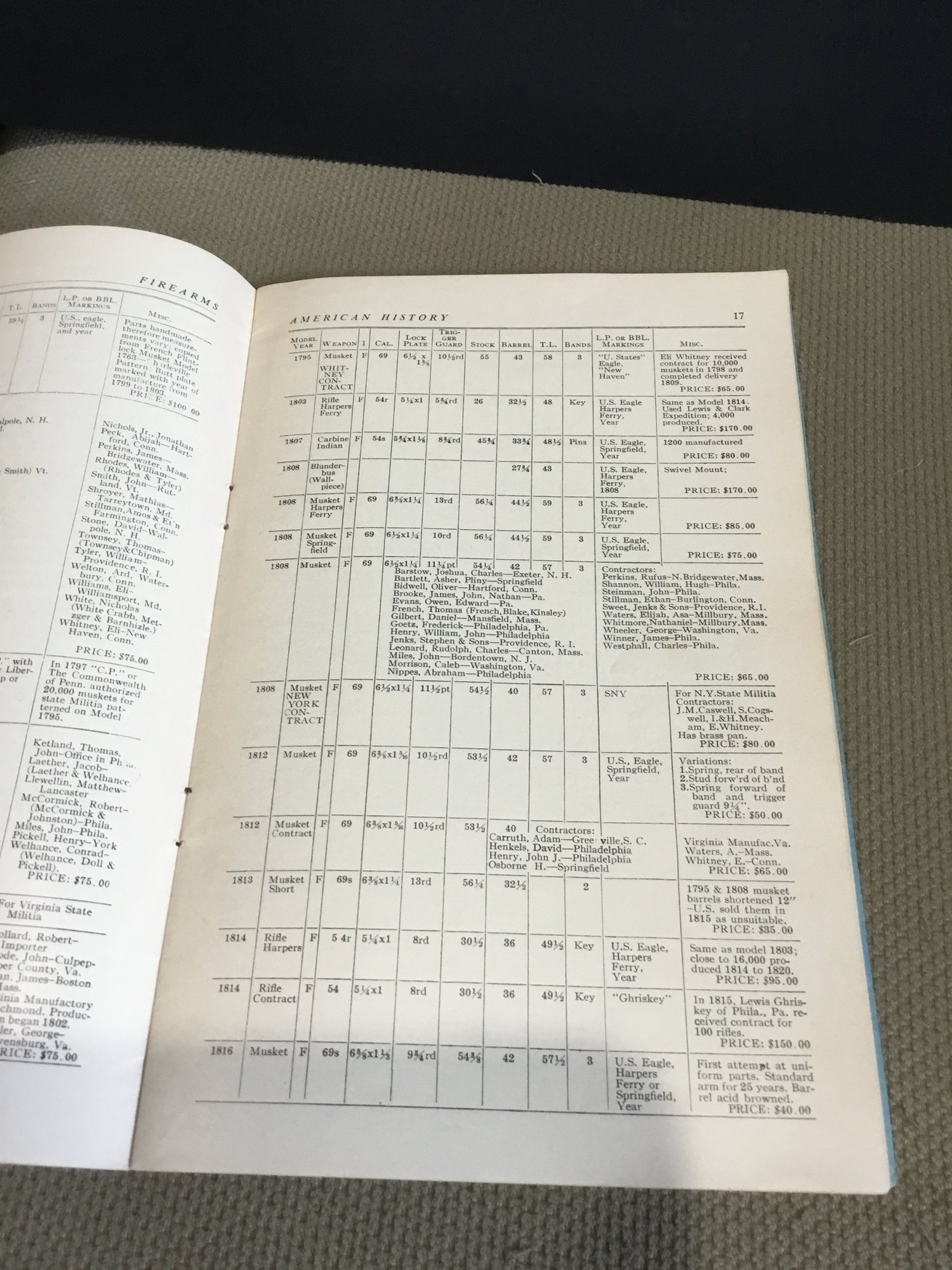 United States military muskets, rifles, carbines, and their current prices,: