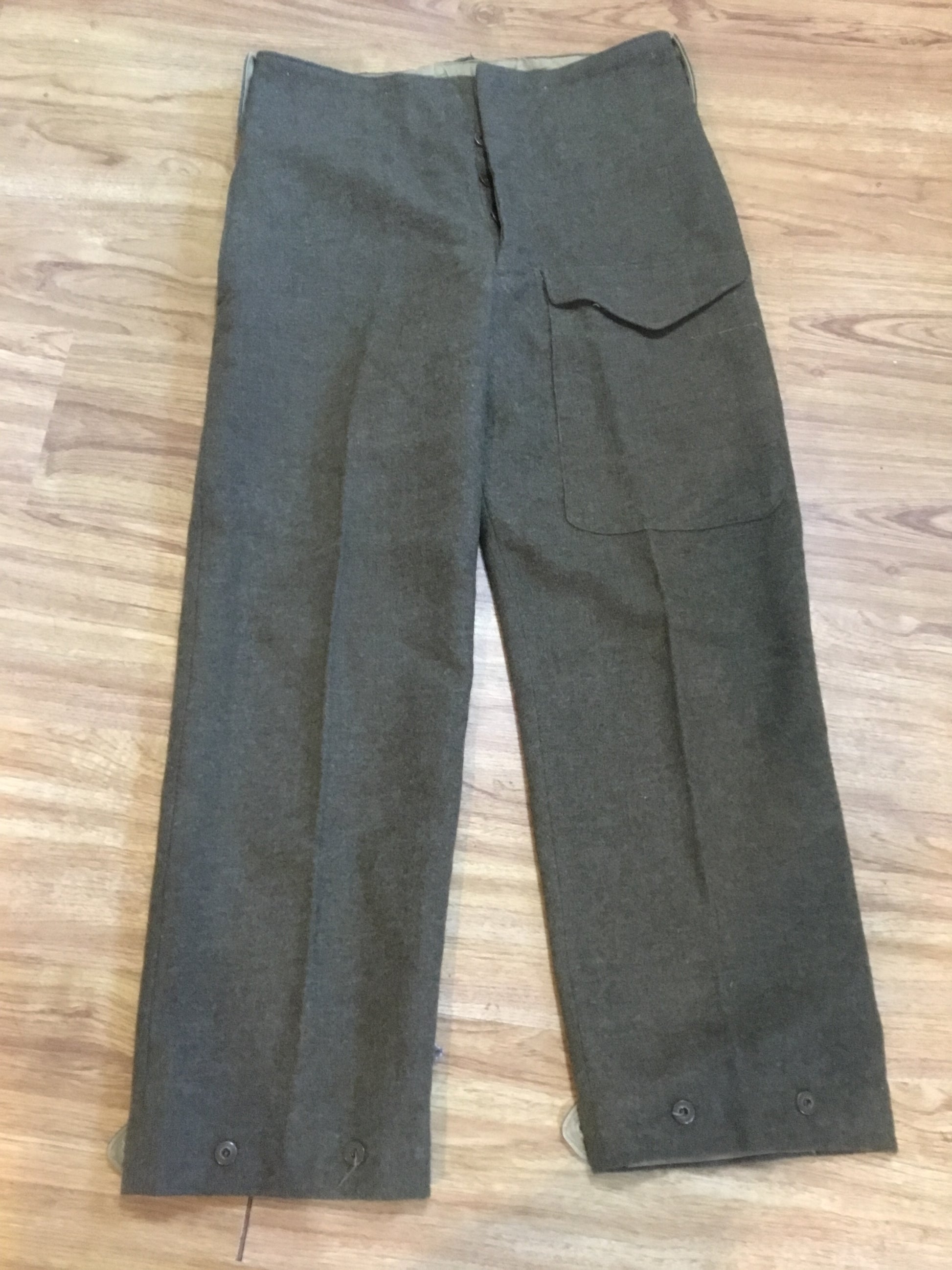 Post War Canadian Wool Battle Dress Pants up to Waist 32 inches , in good condition ,dated 1953 , single cargo pocket .