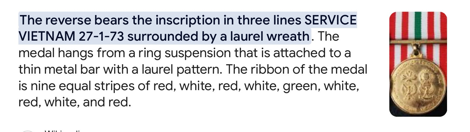 Vietnam ICCS Medal Ribbon 10 Inches