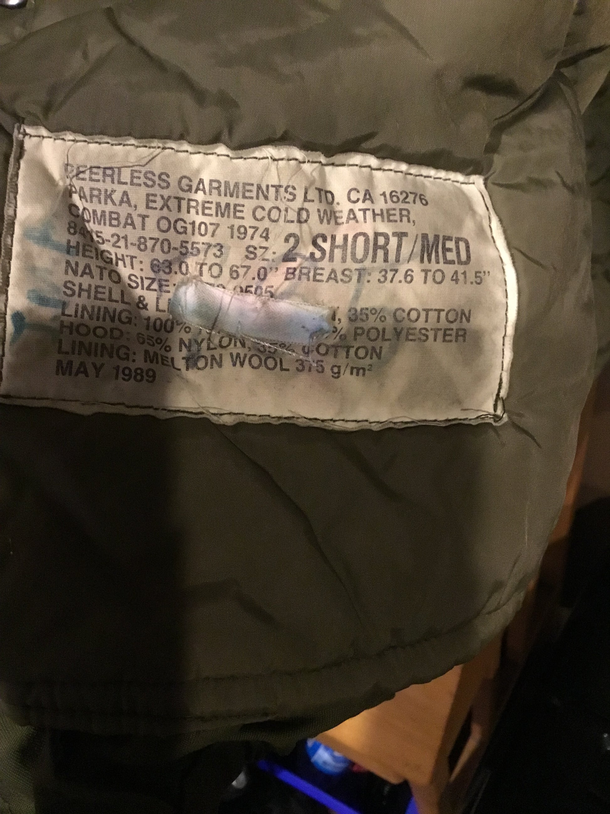 Vintage Canadian Forces Arctic. Parka (Medium Short , removeable liner and snorkel hood , heavy duty zipper , no rips or tears , some staining on the back . These older parkas are getting harder to find .