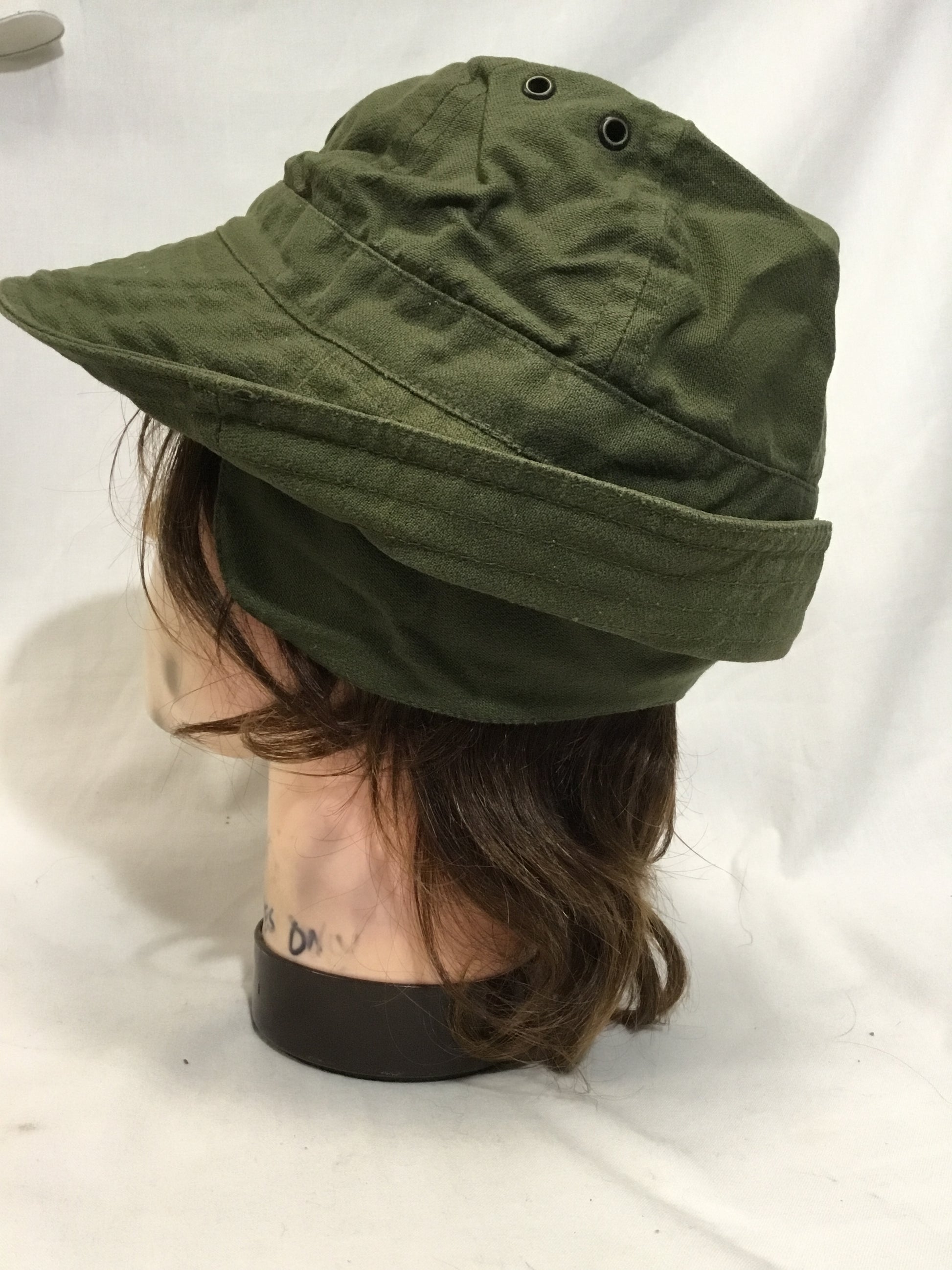 Vintage Canadian forces bush cap size 7 1/8 in good condition , with some fading wear ,has earflaps.May run smaller then tagged .