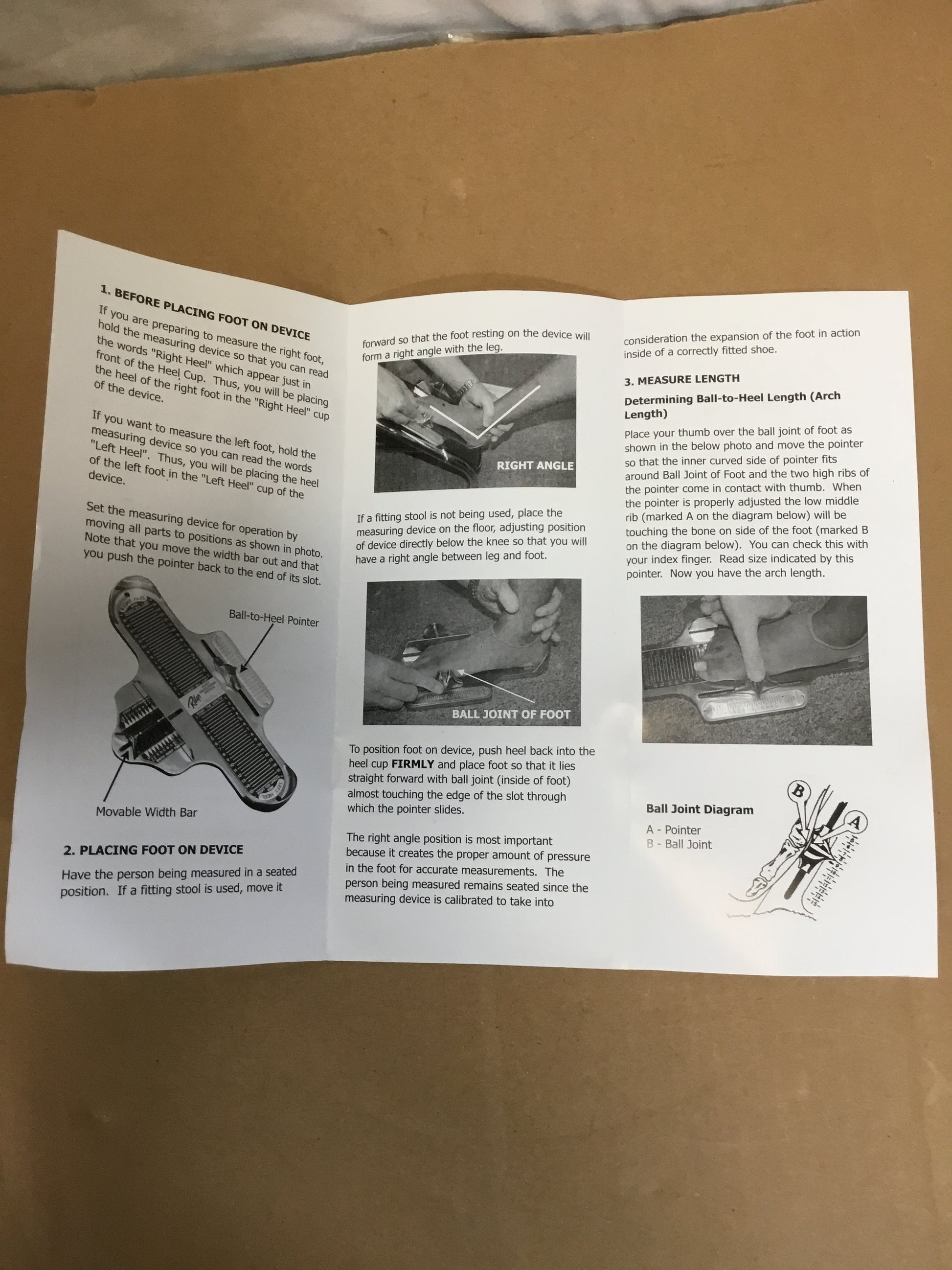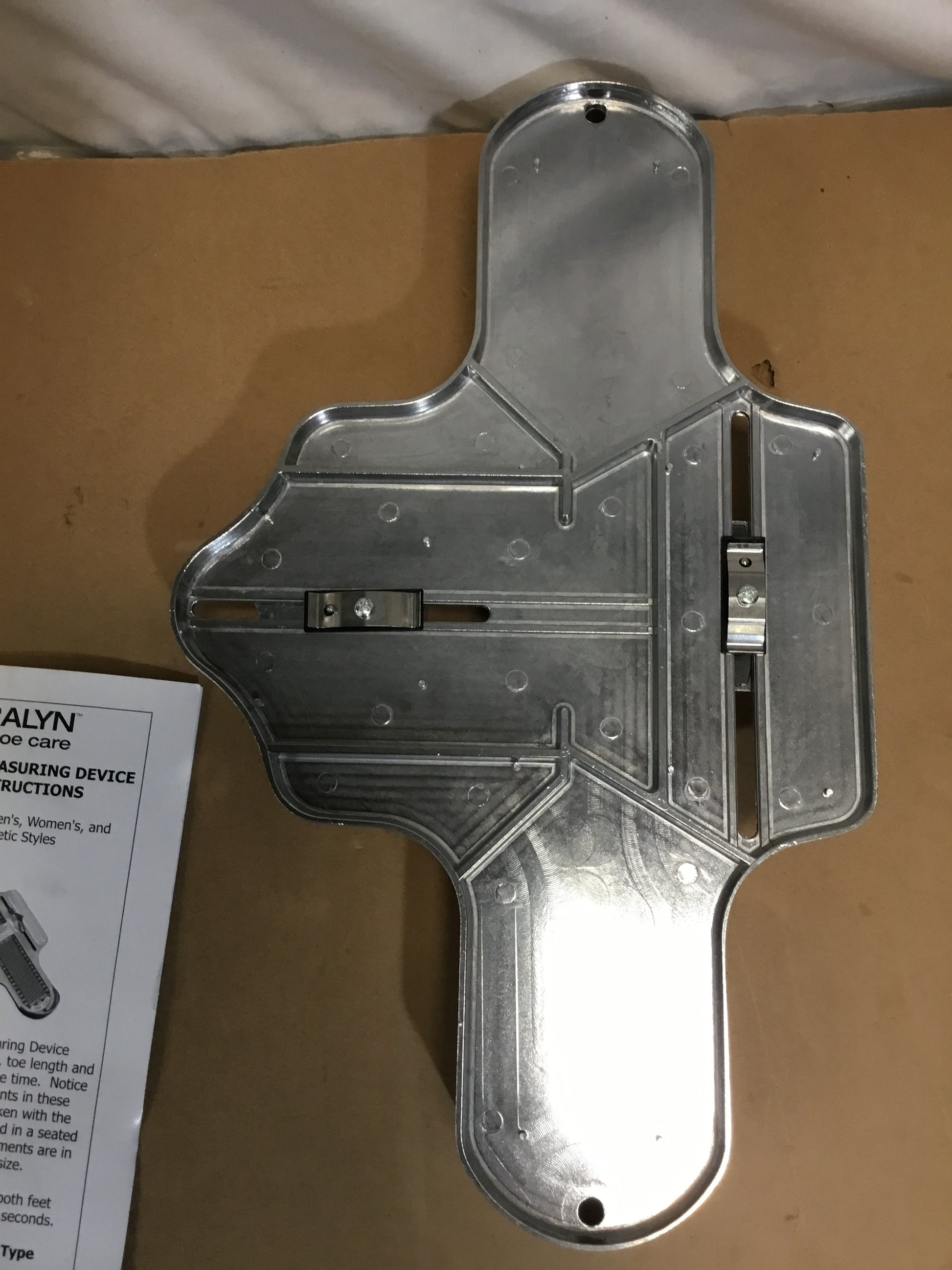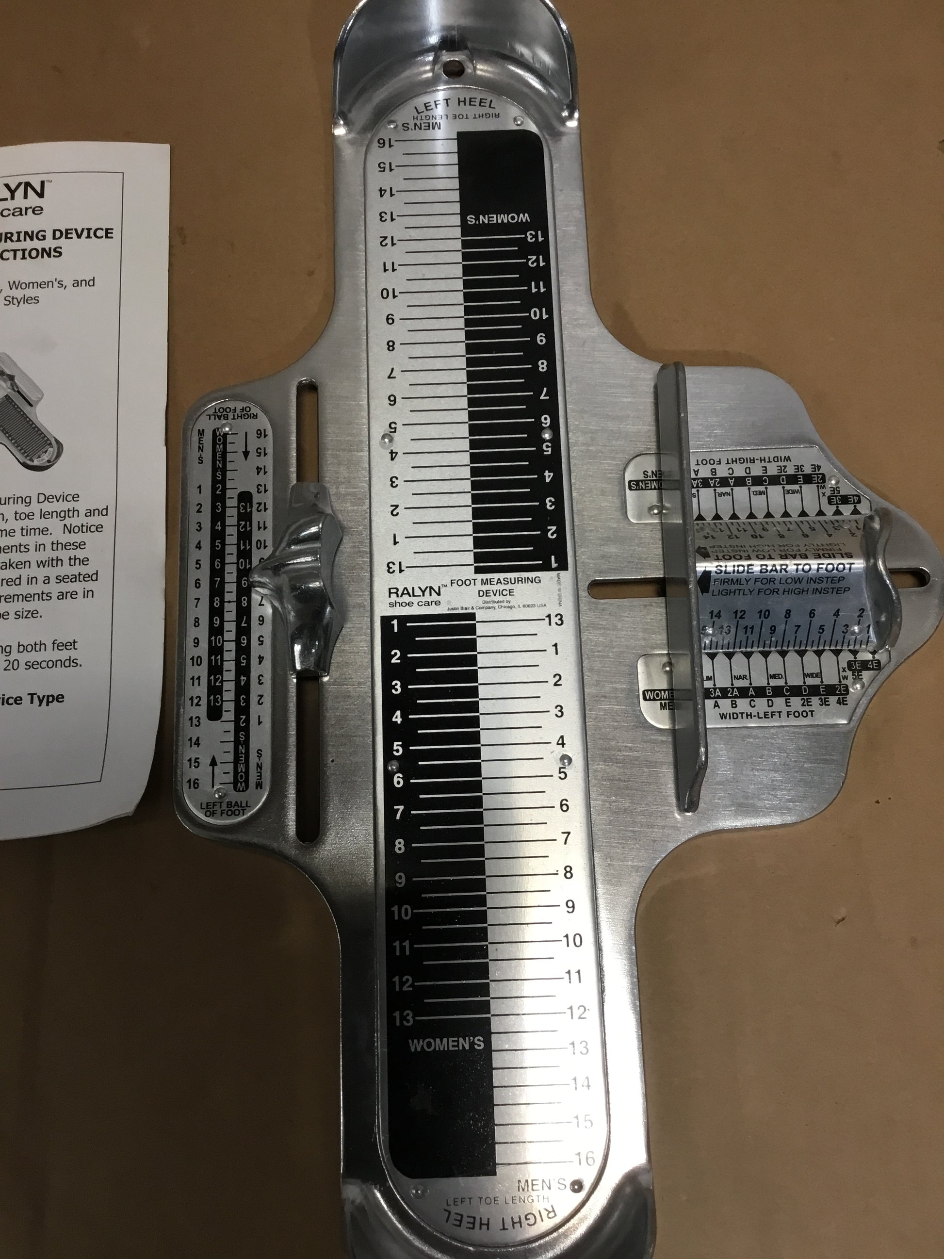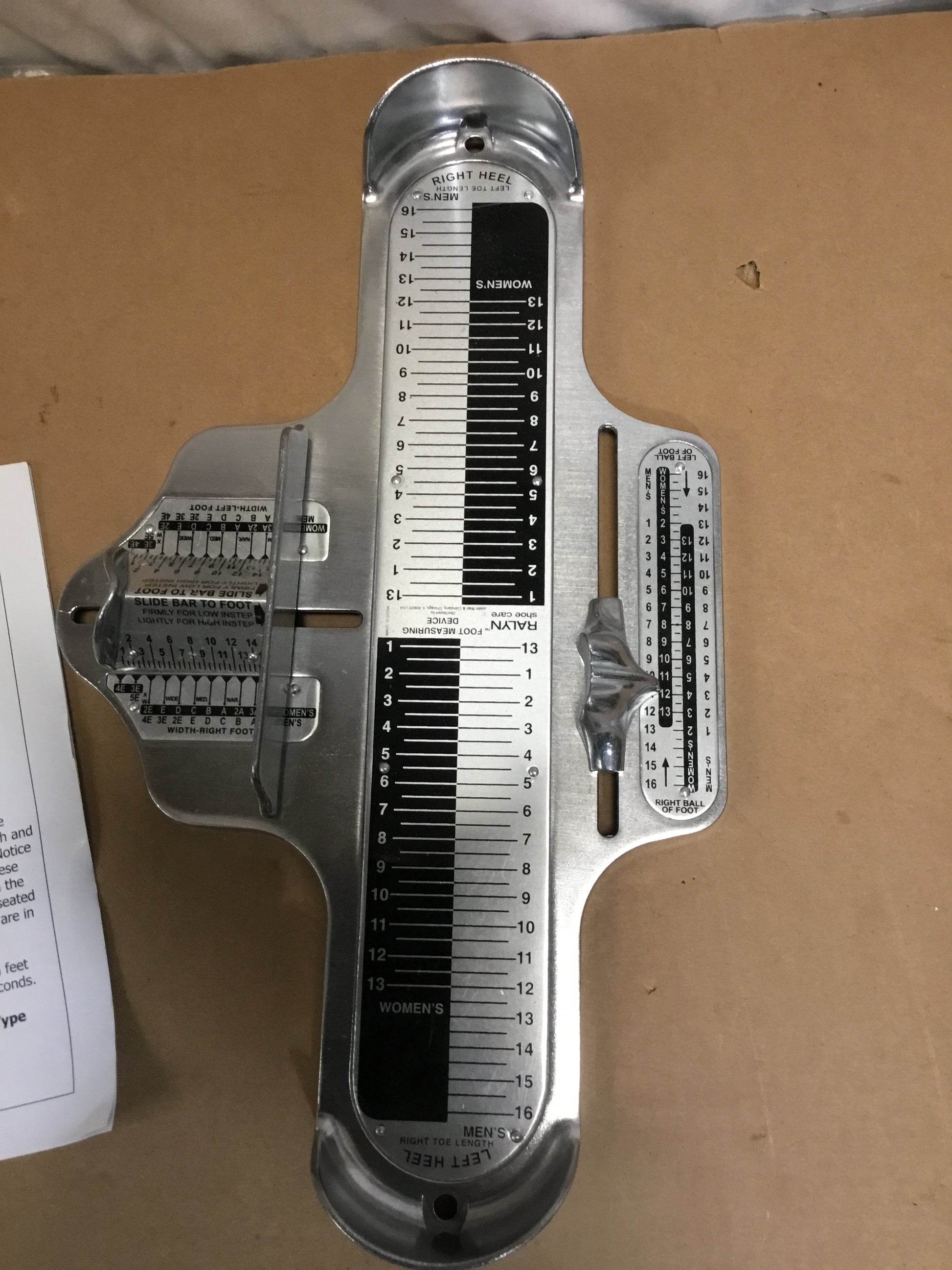 Vintage Ralyn Shoe Store Foot Measuring Device, in excellent condition with instructions, measures both men and women’s feet . Great for display or store , seems to be made of aluminum.