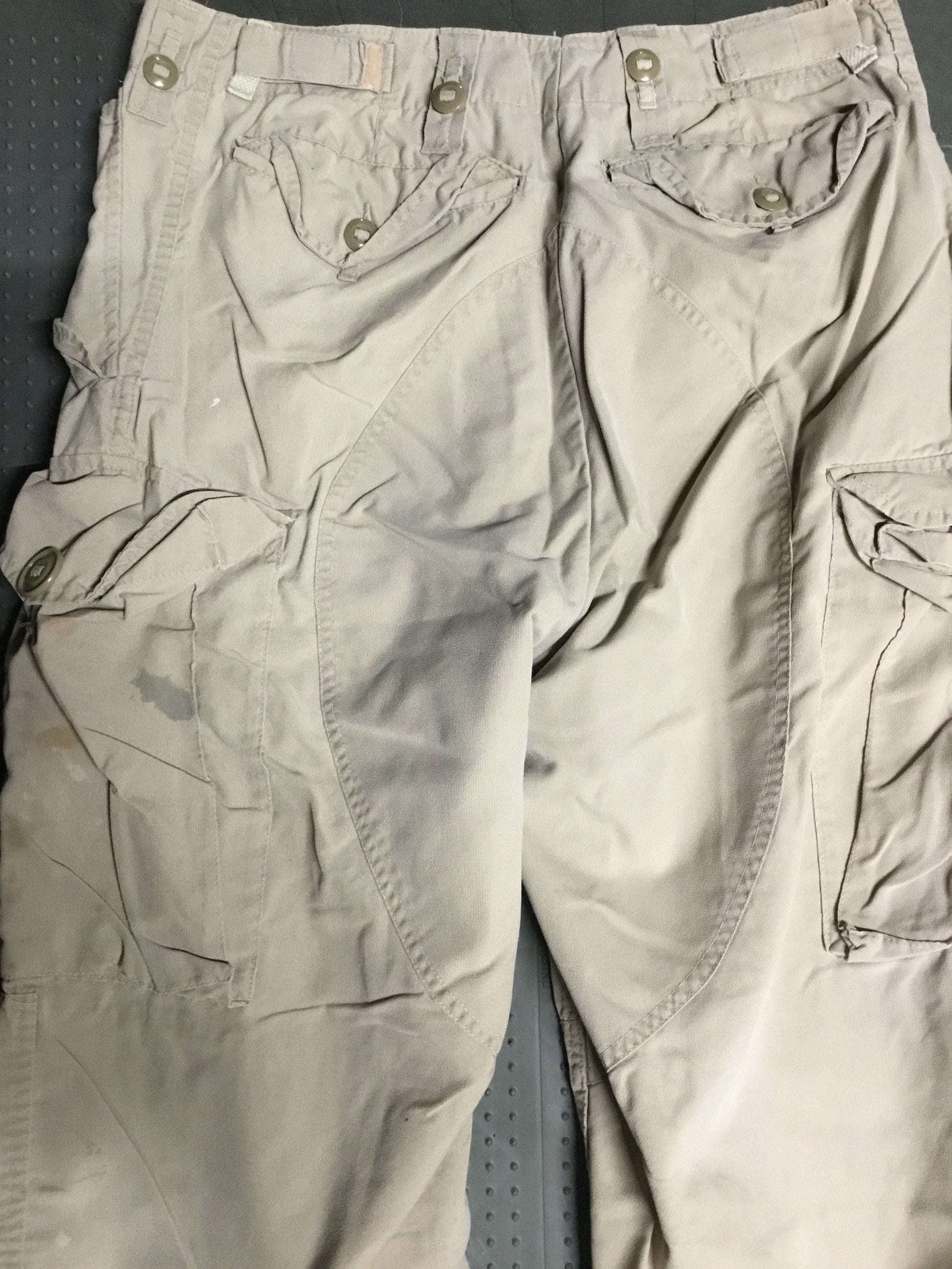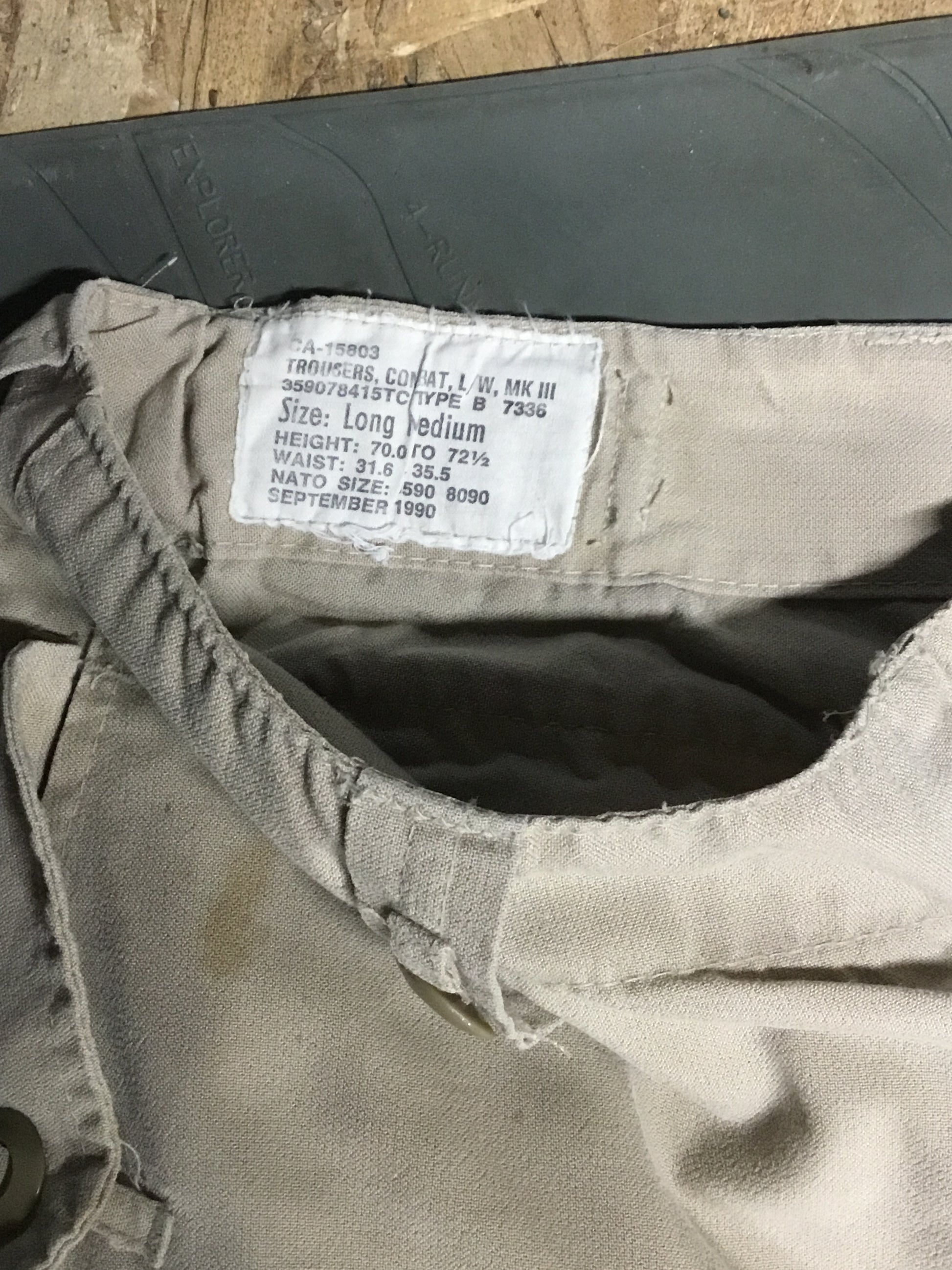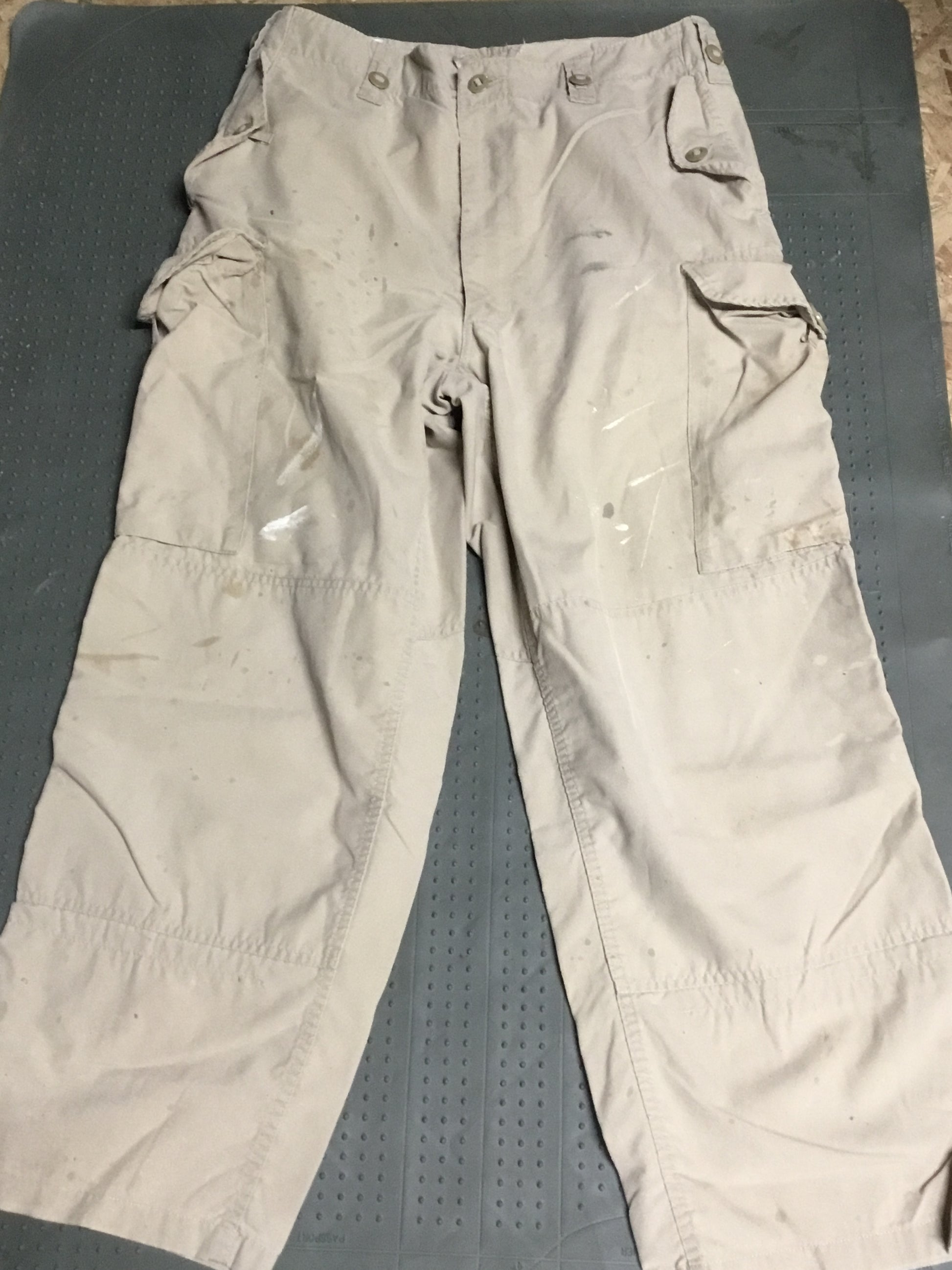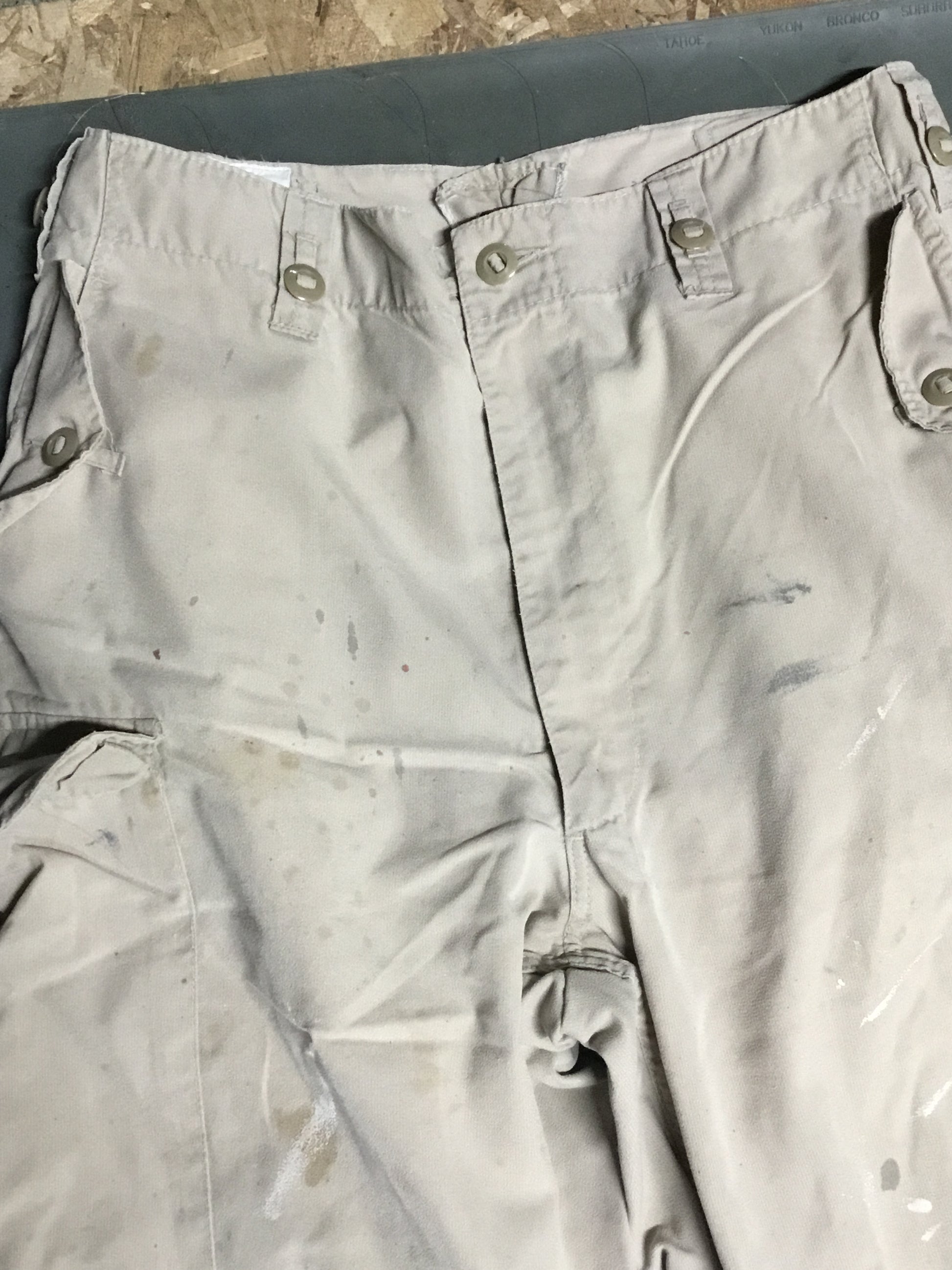 Vintage Tan Canadian Combat pants Medium Tall , waist 31 to 35 inches ,Paint Stains on the front and faded .Dated 1990 , tan ones not often found.