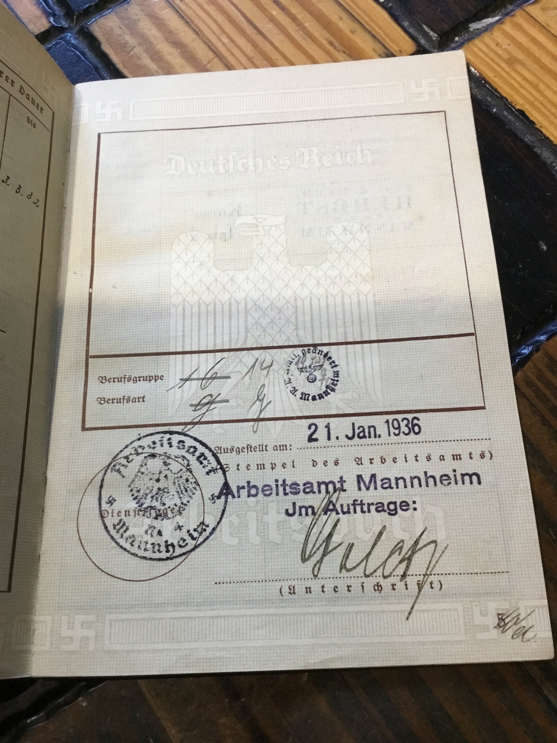 WW2 German Arbeitsbuch Employment Record Book, has a few entries ,last is 1938 ,in very good condition.